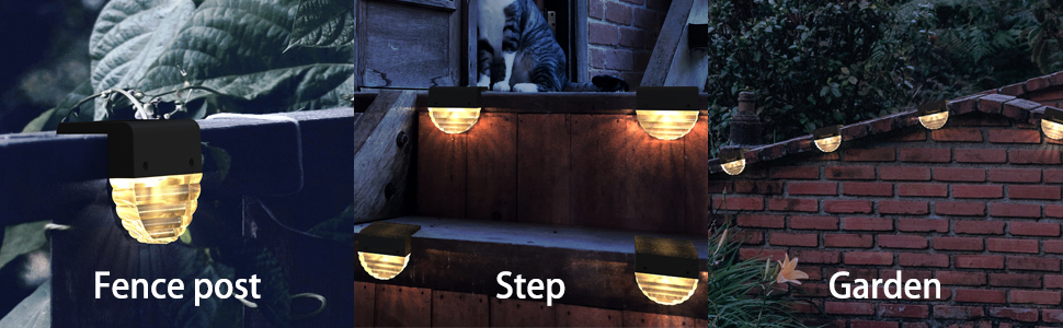 This is a solar lights you've never seen before, and the beautiful amber light makes your yard warm. It can be installed on the deck、post fence 、bckyard、door、garage、wall...more. (Note that it needs to be installed in a sunny place with no shade)