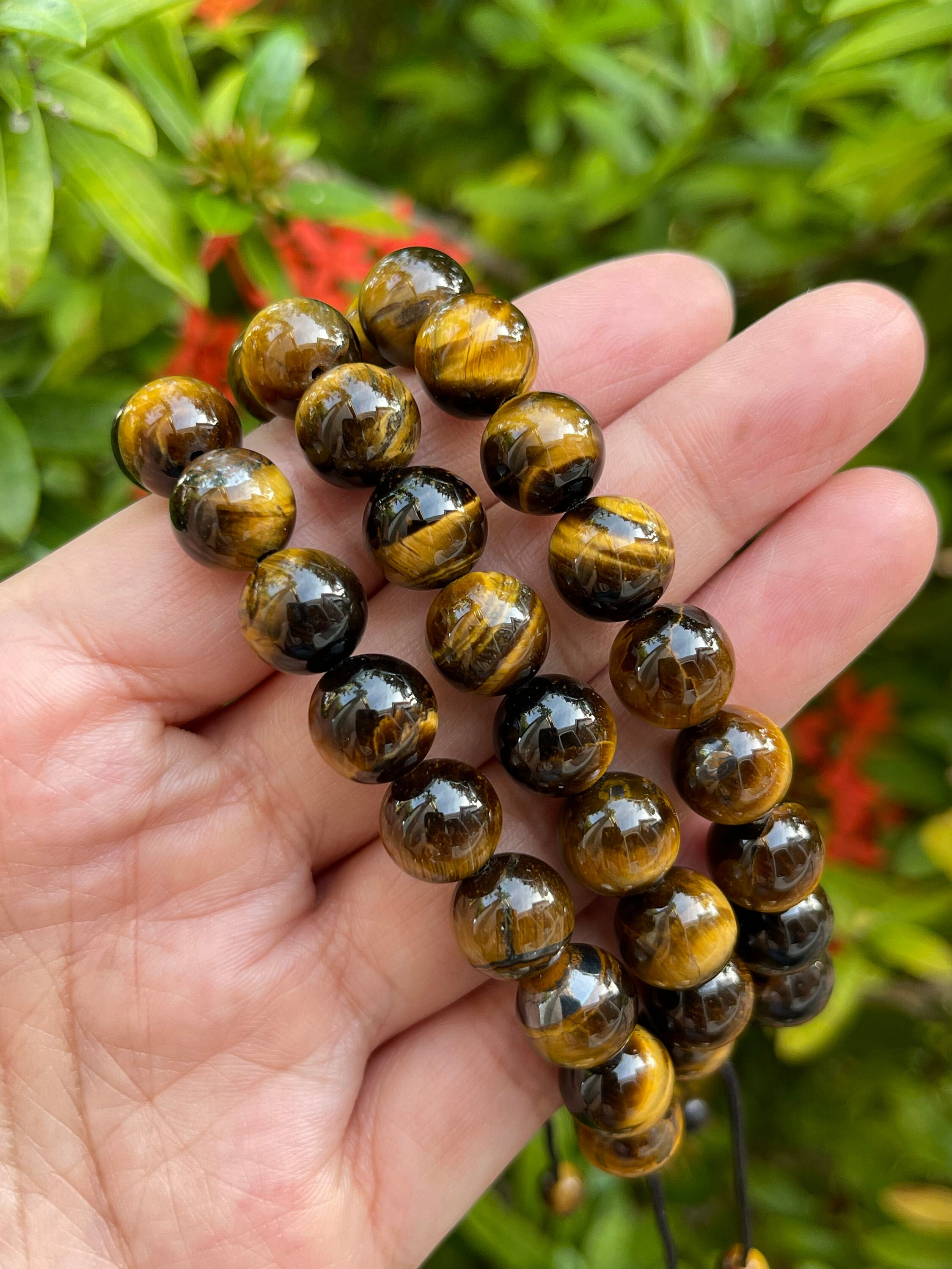 • Tiger Eye Crystal Adjustable Bead Bracelet 10mm, Genuine Gemstone Bracelet, Dispelling Fear and Anxiety, Gift for Men & Women jewelry